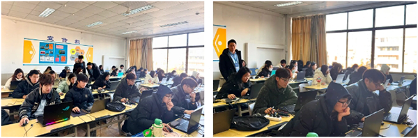 自赛事启动以来,吸引了众多信息工程学院学子的广泛关注与持续参与,最终,共有10支队伍报名参加鸿蒙赛道。在比赛过程中,参赛学生们展现了其扎实的专业知识和技能水平,彰显了当代大学生的优秀精神风貌。青岛恒星软创科技有限公司项目经理王丰钦以及讯方技术青岛恒星讲师王大冠,作为现场监考技术人员,助力比赛顺利召开。
