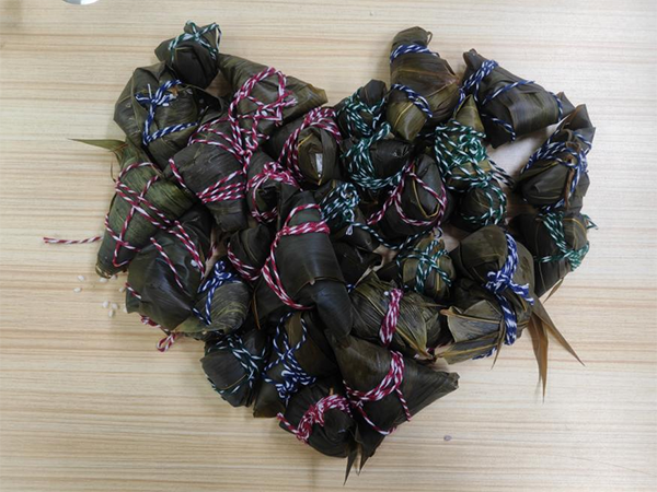 有的同事在折粽叶时,怎么也折不出完美的漏斗形状,粽叶不是破了就是歪歪扭扭;有的同事在放馅料时,手一抖,馅料撒了一桌;还有的在缠棉线时,不是打结失败,就是粽子包得松松垮垮,仿佛随时都会散架。现场不时传来“哎呀,我的粽子漏米啦!”“怎么办,这线怎么打结啊?”之类的惊呼声和欢笑声。但即便如此,大家并没有气馁,反而越挫越勇,互相研讨经验,互相帮助。有的同事手把手地教着新手,有的同事则在一旁出谋划策,现场气氛热烈而融洽。