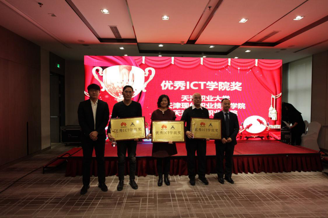 分享结束后,由华为公司杨骏超先生与讯方公司姚勇副总裁共同为天津职业大学、天津现代职业技术学院、天津工业职业学院颁发“优秀ICT学院奖”。 紧密的校企合作关系助力三所高校学生更清晰地分析到行业前沿知识,掌握行业实用技能,大大提升了就业竞争力。更是极大地提高了高校的专业建设水平,形成了极具特色的品牌高校,促进校园招生和学生就业,真正实现了进出口双向通畅。