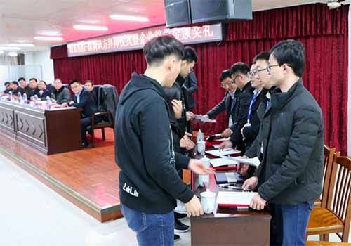 拜师仪式后,进行企业奖学金的颁发仪式。企业奖学金是由深圳讯方公司出资设立的“华为网络学院企业奖学金”,每年评选一次,我院与讯方共同参与评选,用于奖励我院华为网络学院在校学生中热爱专业、勤奋学习、品学兼优的优秀学员。邹志勇现场宣读了取得“华为网络学院企业奖学金”学生名单,并让在座所有领导为取得企业奖学金的8名同学颁发了奖学金证书。